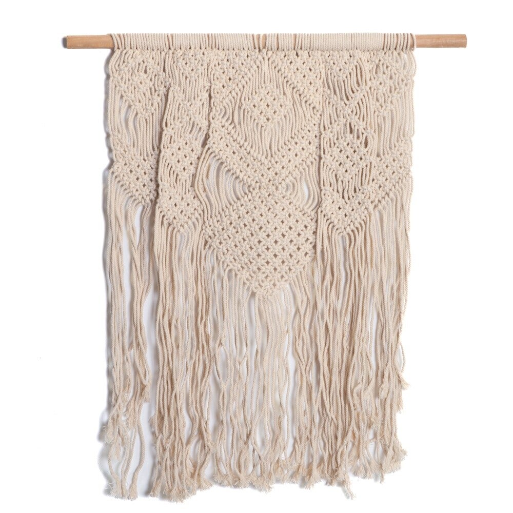 Een prachtige handgemaakte Macramé van ongeveer 60 cm lang. De Hanger is ongeveer 50 cm breed.